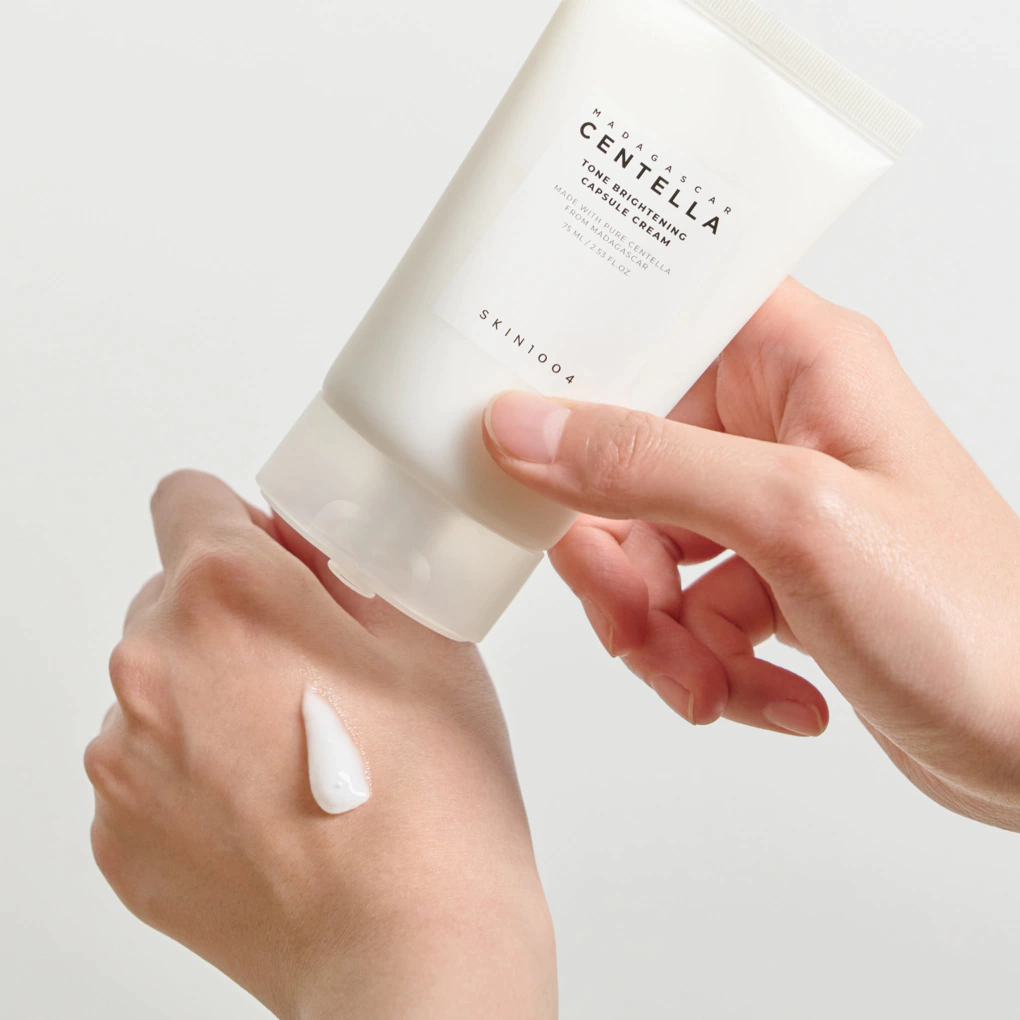 SKIN1004 Tone Brightening Capsule Cream 75ml es la solución perfecta para quienes buscan una piel radiante y uniforme. Esta crema encapsulada combina ingredientes patentados que tratan eficazmente las imperfecciones, equilibran el tono de la piel y proporcionan una iluminación profunda que se refleja en un cutis más fresco y saludable.